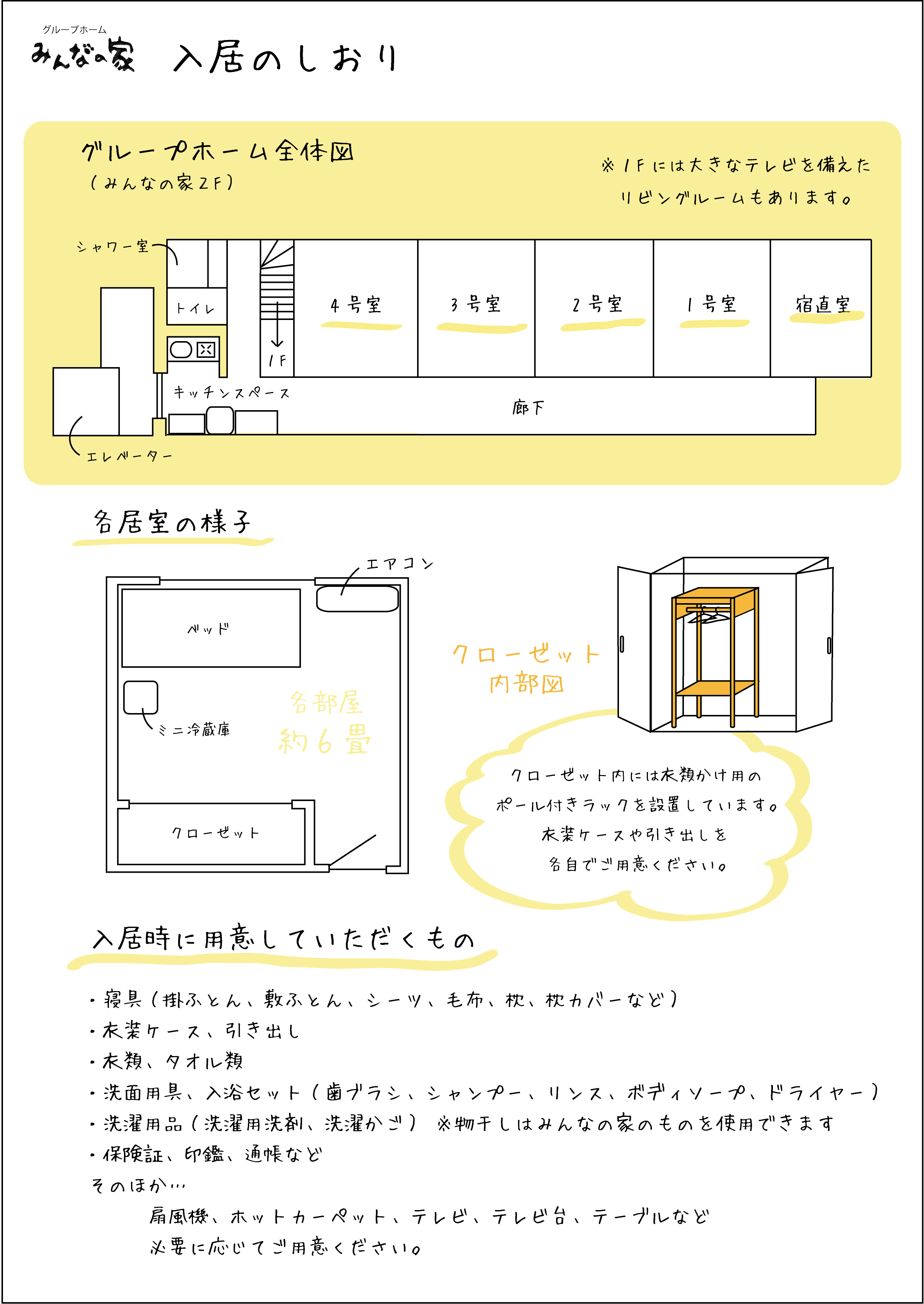 1.ピア・ケアホーム「みんなの家」を利用したいご本人が見学にお越しください。