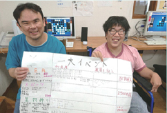 利用者さんによる利用者さん同士でのお出かけ企画進行中。雑誌やネットの情報から気になるお店をリサーチ中。