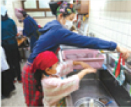 こちらは下関のお寺に関わる女性で構成される「下関仏教若婦人会」さんの秋の研修会ということで、ご法話やお精進のスイーツづくりがテーマの会でした。つるはち食堂は卵や乳製品など動物性食材を使用しないお菓子も提供してきた経験から、今回は講師として参加させていただきました。なんと40名近い参加者が集まり、お子様と親子で参加される方も多く大変にぎやかなスイーツ教室となりました。
